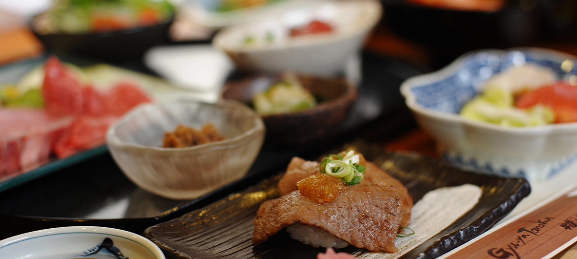 自家牧場で丹精込めて育てた最高級の但馬牛・神戸ビーフをふんだんに使ったメニューを提供するレストラン「牛屋(ぎゅうや)たなか」です。