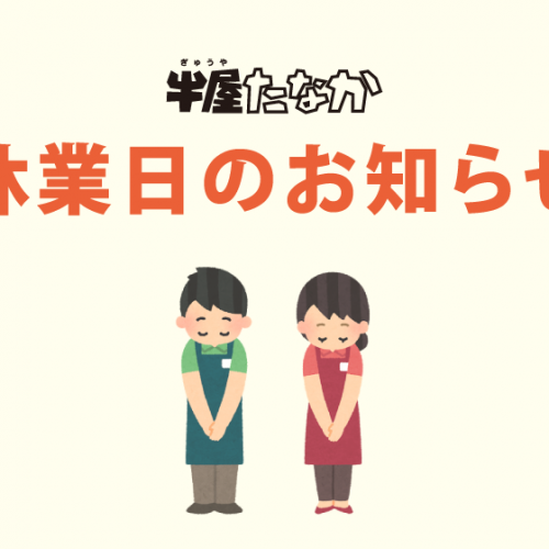 レストラン「牛屋たなか」休業日および営業時間のお知らせ